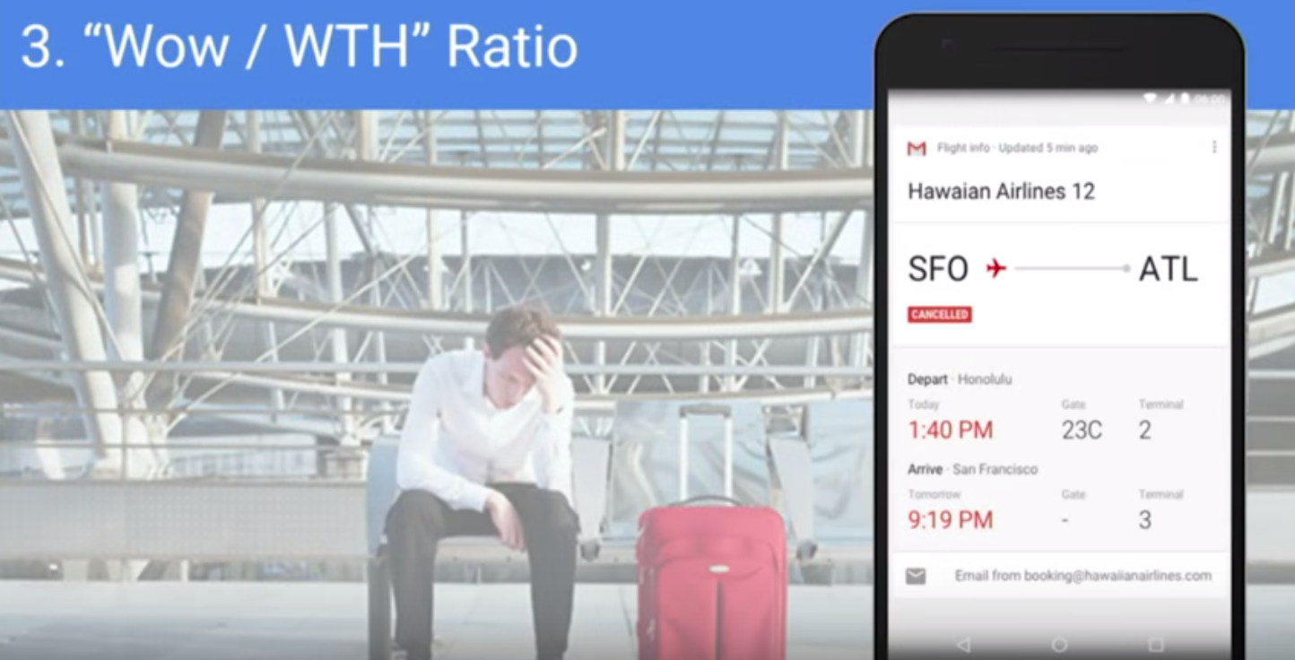 When we were working on the Google Assistant, and we say, hey, you’re flight is on time, you can leave right now and it takes 45 minutes to get to the airport and then you go to the airport and you miss the damn flight and can’t speak at the conference, then the “What the Hell” is much higher.